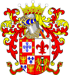 Esquartelado: I - Lancastre: de prata com cinco escudetes de azul, postos em cruz, cada escudete carregado de cinco besantes de prata, postos em sautor; bordadura de vermelho carregada com sete castelos de ouro, e um filete de negro, posto em contra-banda e atravessante sobre tudo; II - Esteves (de Rodrigo Esteves): de prata com flor-de-lis de vermelho; III - Veiga de Nápoles: esquartelado: o primeiro e quarto de vermelho, uma águia de ouro estendida, armada de prata; o segundo e o terceiro: de prata com três flores-de-lis de azul (Nápoles); IV - Cardoso: de vermelho, om um ardo de verde, florido de duas peças de prata, arrancado de ouro e sustido por dois leões de ouro afrontados; Elmo de prata a 3/4 tauxeado de ouro e forrado de Azul; virol e paquifes de ouro e vermelho; Timbre: coronel de Visconde; correias de vermelho perfiladas de ouro. Tachões de ouro. Foi Visconde de Alenquer D. Tomás de Nápoles Noronha. Este título foi criado por D. Luís I, de Portugal por Decreto de 11 de Dezembro de 1873.